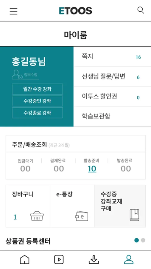 - 쪽지, 선생님 Q&A, 이투스 머니, 학습 보관함 서비스를 이용하실 수 있습니다.