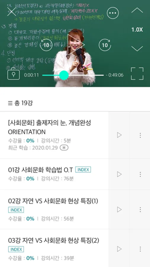 - 0.1 단위로 배속을 조절 가능하여 원하는 강의 속도로 학습할 수 있습니다.