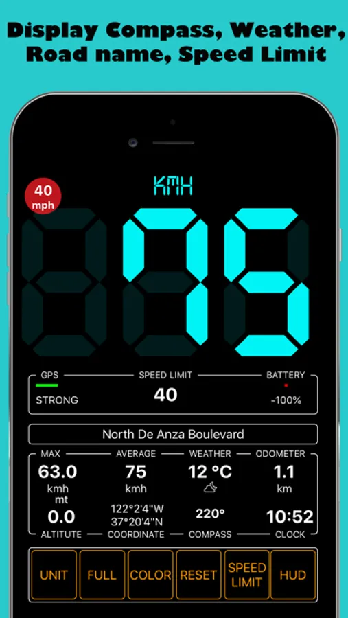 10. This speedometer gets online speed limit of the road you are driving and sound ALERT for overs peed to prevent form penalty.