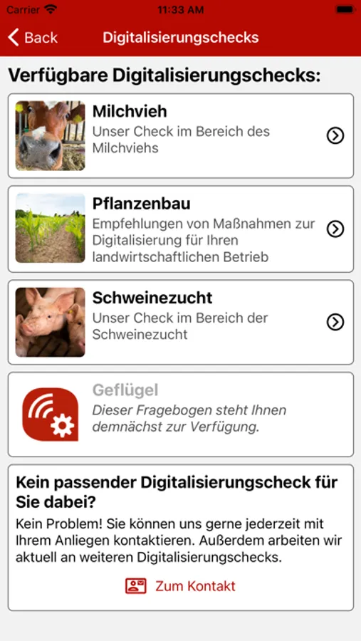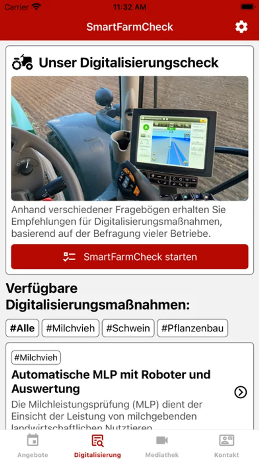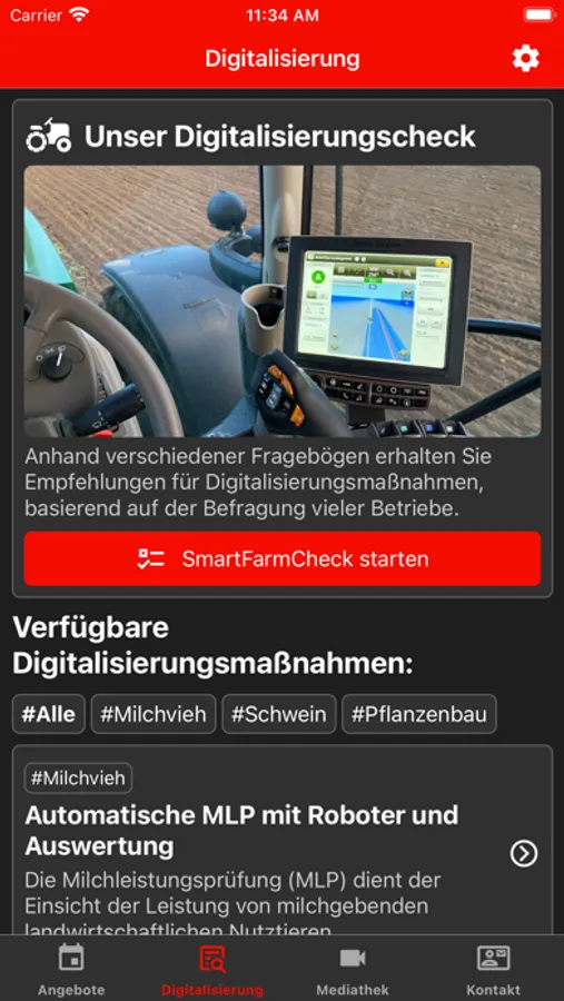 Diese App bietet einen Überblick über Digitalisierungsmaßnahmen und weiterführende Ressourcen in der Agrarbranche und Tierhaltung.