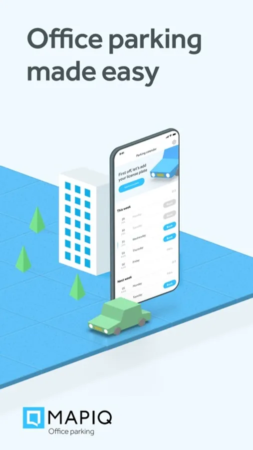 With Mapiq Office Parking, you can easily book a parking spot at your office. Before you go to the office with your car, make sure you have booked a parking spot.