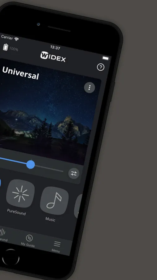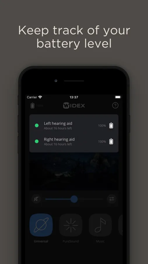 With a tap you can change program, adjust volume and mute/unmute your hearing aids directly from the Home screen.