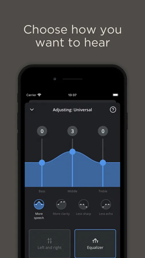 Adjust the bass, middle and treble of individual programs so your hearing aids sound just how you want them to.