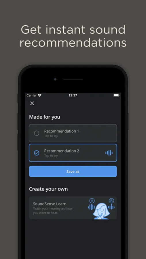 We'll offer you recommendations to optimize your sound based on how users around the world have used their hearing aids.