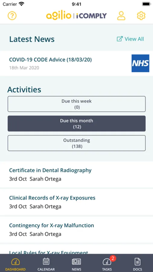 iComply Application by Agilio Software leads step by step through all essential compliance. It tells you what to do and schedules it on a personal calendar. The iComply app keeps your personal diary handily available so that you know what’s coming up and what needs to be done. Plus you can even take of photo of evidence such as a checklist and upload it straight to iComply’s the ideal companion to the iComply Application, making you feel always in touch. The Staff Handbook will be available to you as well as iComply news. Download the iComply Health app now and stay in touch.