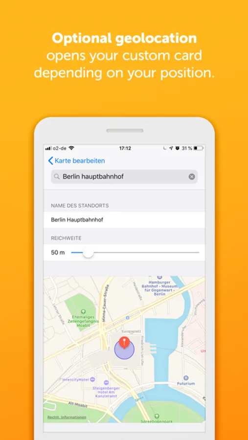 • Optional geolocation opens your custom card depending on your position