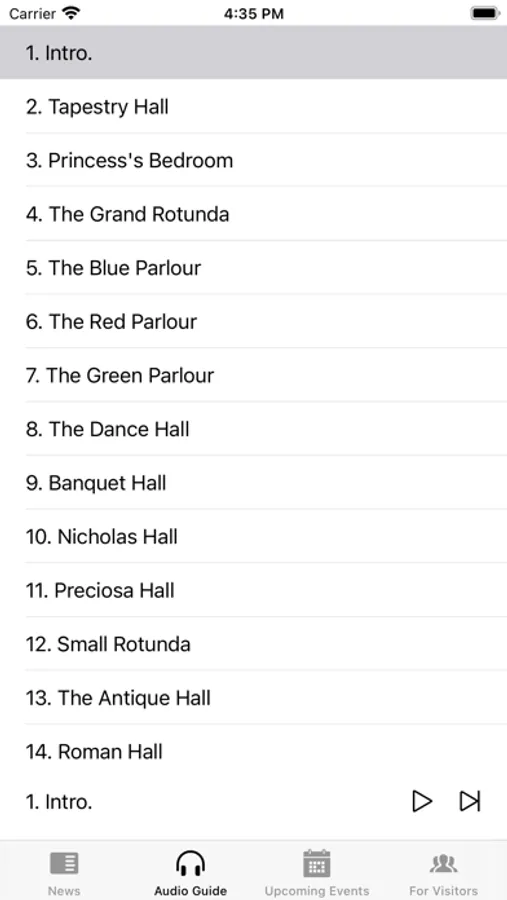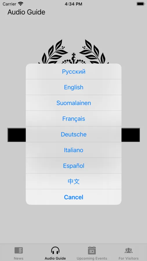 The application is very easy to use - enter the excursion code from the ticket (in the audio guide section), select the language and the list of the corresponding audio tracks and their text descriptions will be loaded.