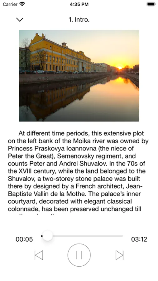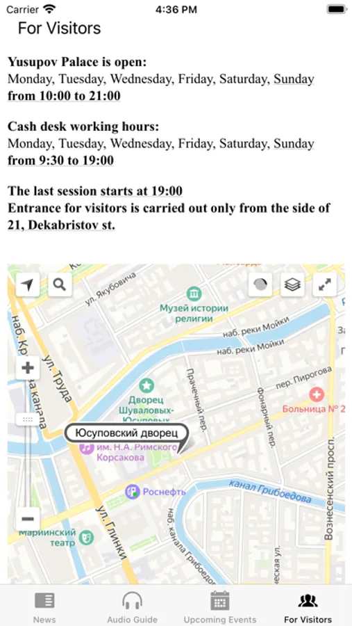 This is the official mobile application of the Yusupov Palace on the Moika in St. Petersburg, created for independent visits to the expositions and exhibition spaces of the Yusupov estate, accompanied by an audio guide.