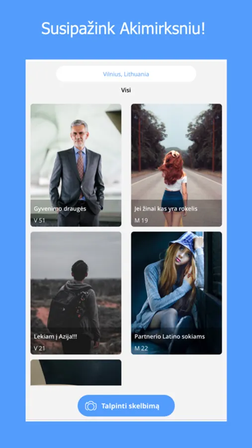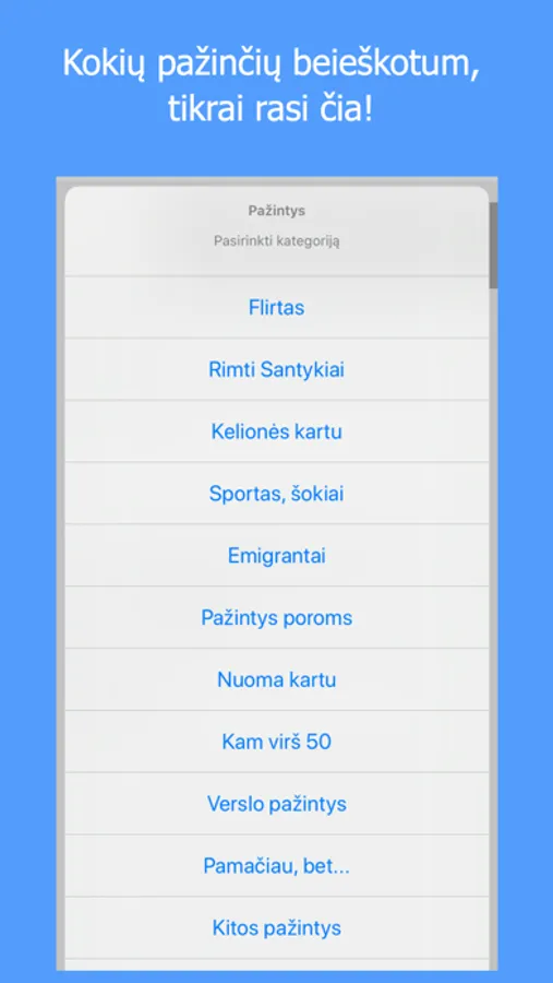 Daug paruoštų paieškos kategorijų leis pasirinkti kokiam tikslui ieškai pažinčių ir surasti tik tau įdomiausius žmones.