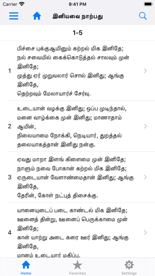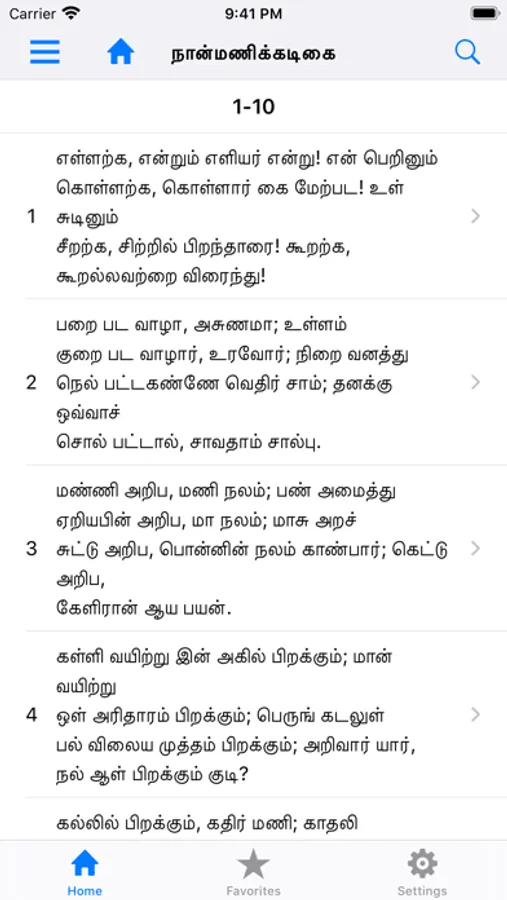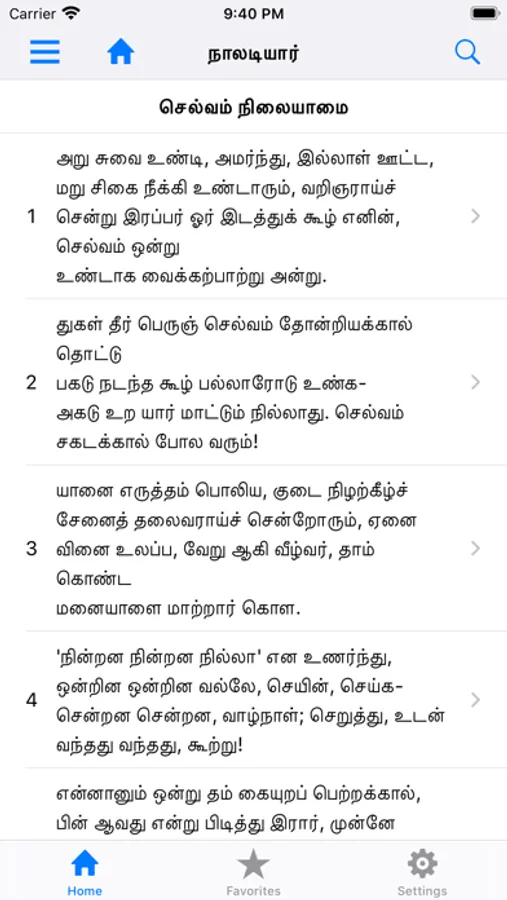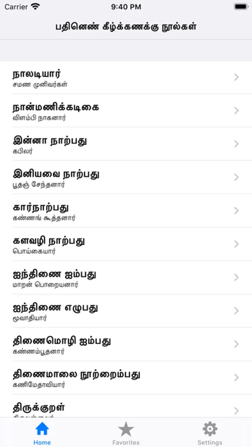 The Eighteen Lesser Texts, known as the Pathinenkilkanakku in the literature, is a collection of eighteen poetic works mostly created during the 'post Sangam period' (between 100 - 500 CE). The poems of this collection differ from the earlier works of the Eighteen Greater Texts (Patinenmelkanakku), which are the oldest surviving Tamil poetry, in that the poems are written in the venpa meter and are relatively short in length. Naladiyar, having sung by 400 poets, is the only anthology in this collection. Each of the remaining works of the Eighteen Lesser Texts is sung by a single poet. Unlike the works of the Eighteen Greater Texts, most of the books of the Eighteen Lesser Texts deal with morals and ethics.
