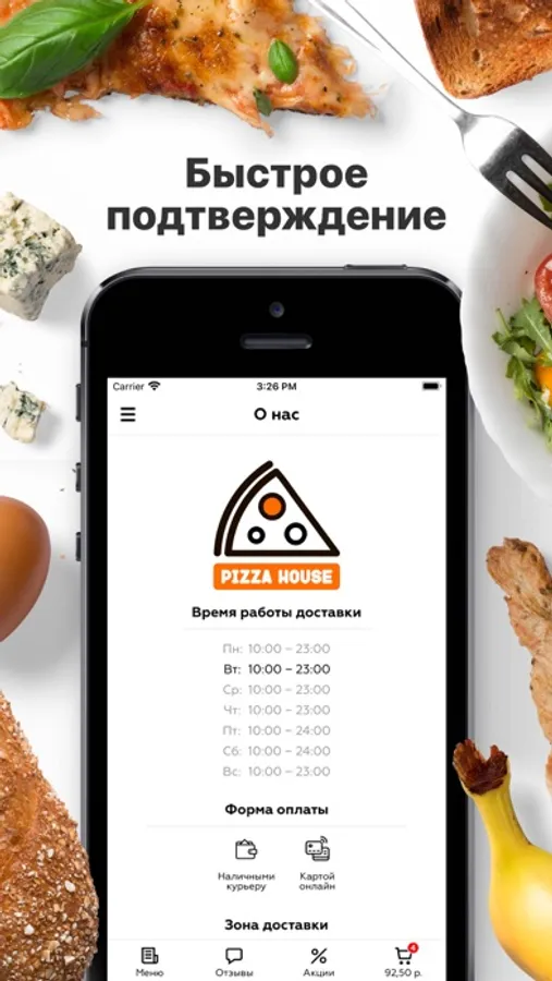 — Быстрый заказ с мгновенным подтверждением через приложение.