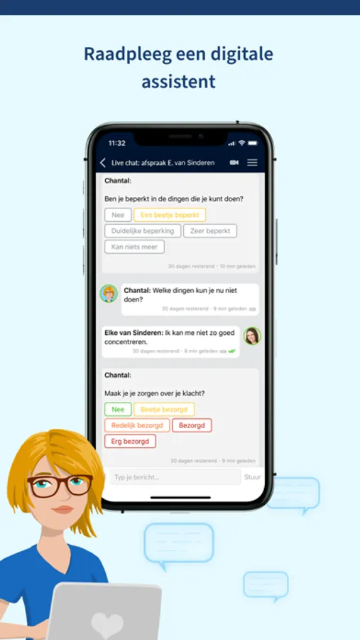 De consulten verlopen via onze uitgebreide beeldbelfunctionaliteiten en ter ondersteuning kunnen er ook chatberichten en bestanden uitgewisseld worden. Ook intercollegiaal overleg kan plaatsvinden in een digitale spreekkamer.