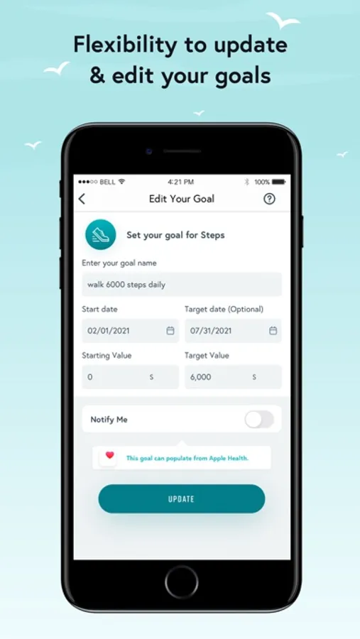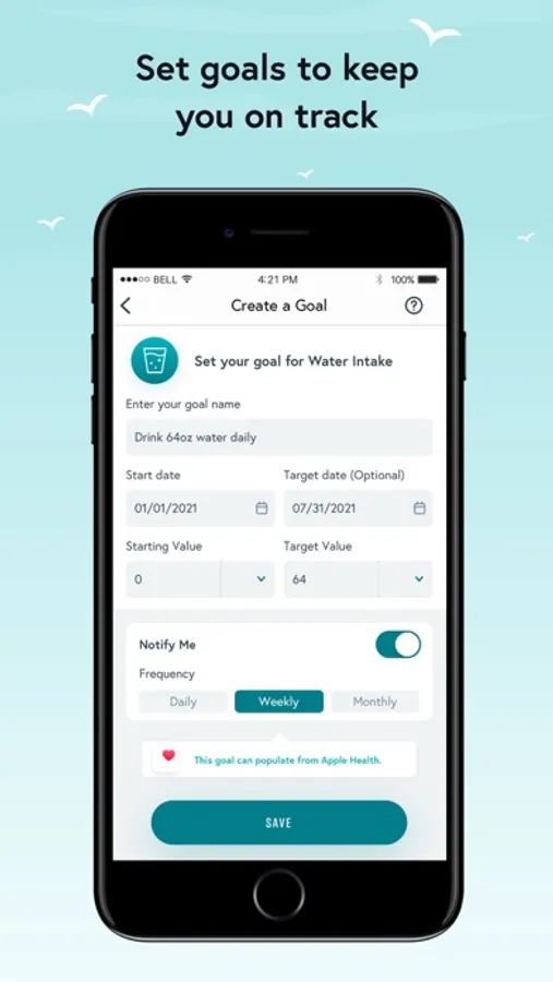 Receive push notifications to remind you to check in on your goals, on a daily, weekly, or monthly basis.