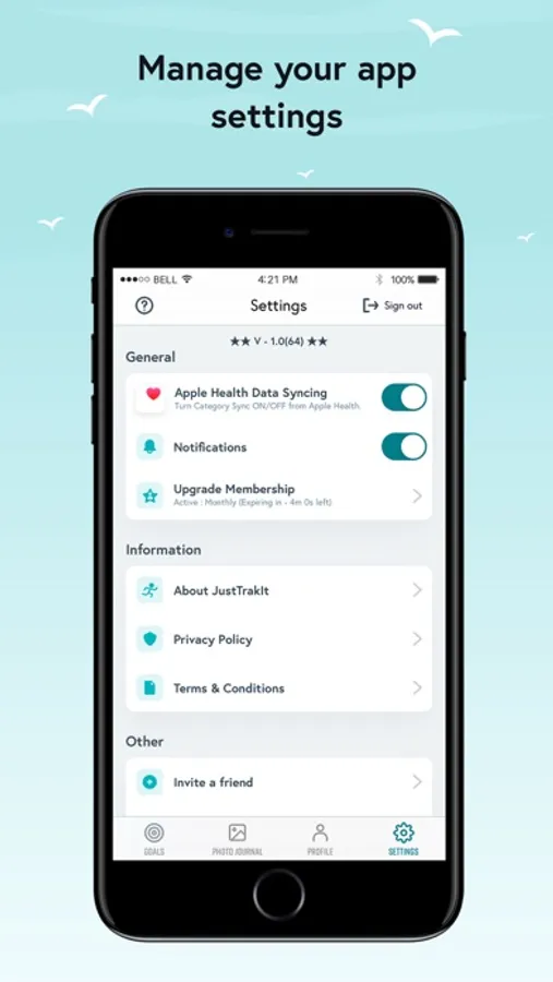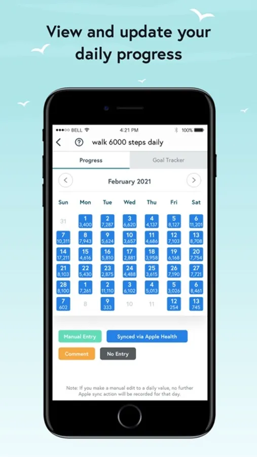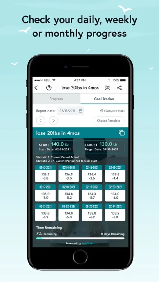 You set the target and length of time for each goal. Sync your activity with ease, via Apple Healthand/or manually track your progress. Either way, let JustTrakIt capture it all!