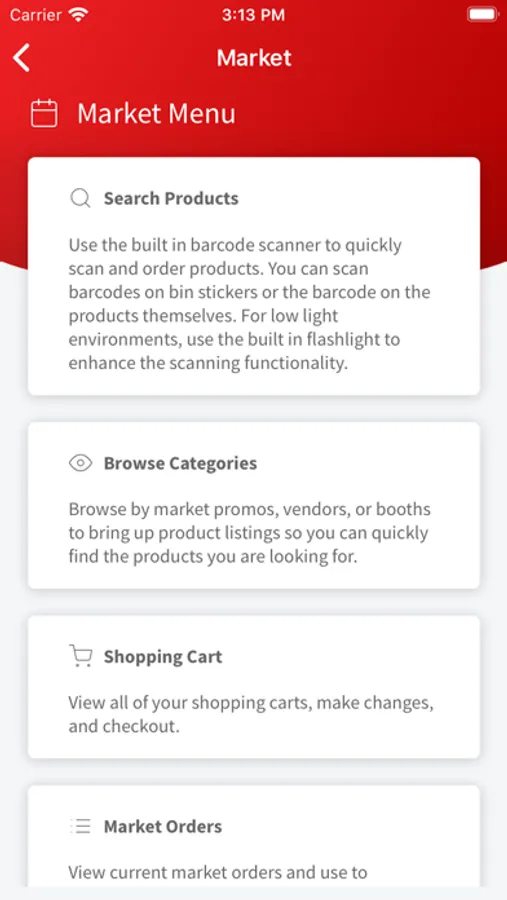 Find products easily by browsing promos, vendors and market booths. Use the sort and filter functionality to narrow down categories.