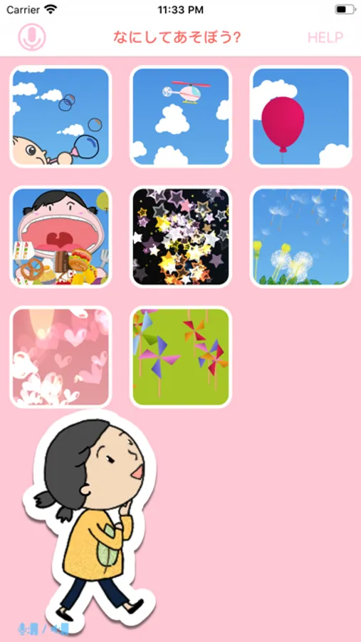 外部マイク(別売)を麻酔マスクの近くに設置して、遊ぶゲームを選んだら、麻酔マスクに向かって息を吹きかけましょう。呼吸の強さで画面内の様々なキャラクターが動きます。