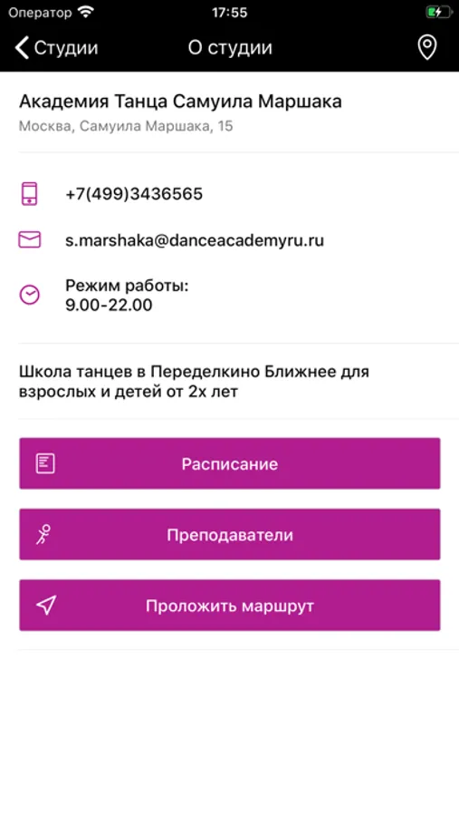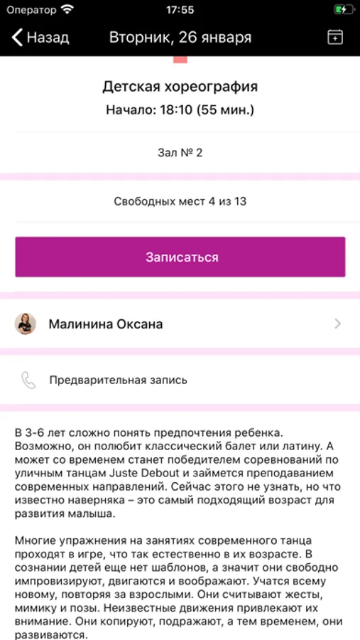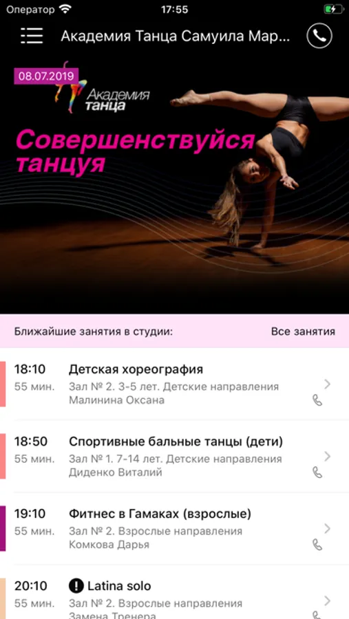 С помощью приложения вы можете следить за новостями, расписанием студий, осуществлять запись на занятия, оперативно получать информацию об изменениях в расписании и специальных предложениях.