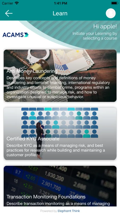 ACAMS gives you a direct access to digital learning and provides a continuous access to courses and resources. Thanks to this application, you will have everything you need right on your mobile device.