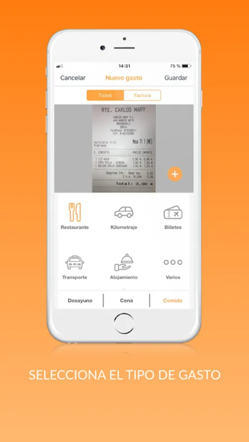 Captura tus tiques, facturas, kilometrajes y muchos más gastos de empresa y estos estarán en
