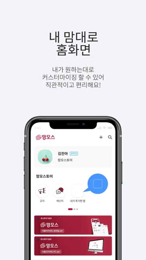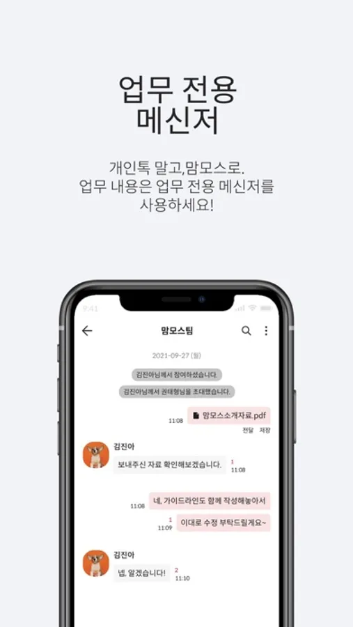 - 거래처에서 맘모스를 설치하면 거래처와의 실시간 모바일 메신저 기능 이용