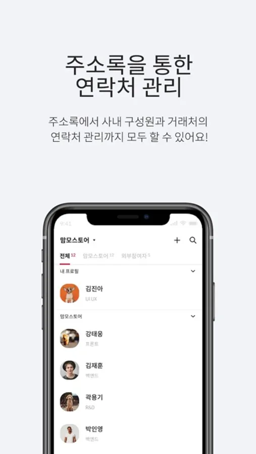 "맘모스"는 기업 업무가 거래처 중심으로 이뤄지도록, 거래처별 채널을 통합하고, 비대면 모바일 환경에서 업무처리를 지원하는 협업 도구 입니다.