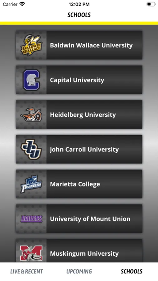 Live and on-demand sports video streaming for Baldwin Wallace, Capital, Heidelberg, John Carroll, Marietta, Mount Union, Muskingum, Ohio Northern, Otterbein, and Wilimington.