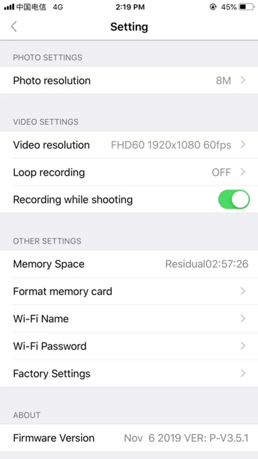 1. Set the shooting resolution of videos and photos.