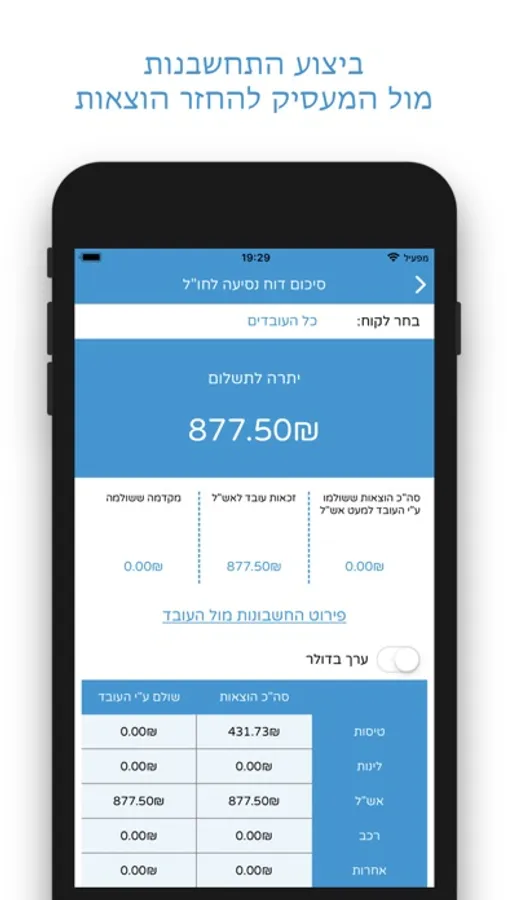 השימוש באפליקציה פשוט, נוח, קל ומהיר, העובד ידע בכל רגע נתון את מצב ההתחשבנות