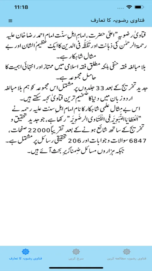 In This application you will be able to read and search in this great book on legal rulings in Hanafi Fiqh written by the great Imam, Mujaddid, Faqih, muhaddis Ahmad Raza Khan Barelvi رحمه الله