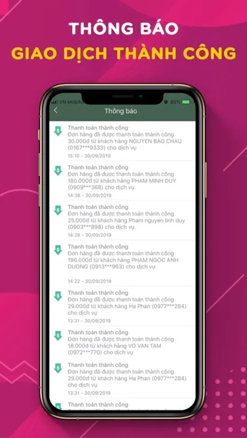 - Quản lý giao dịch: dễ dàng xem lại lịch sử giao dịch theo thời gian và nhận thông báo khi có giao dịch xảy ra