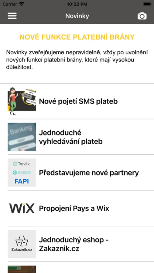Podstatnou funkcí jsou i automatická upozornění na nové funkce platební brány a další důležité a aktuální informace pro uživatele.