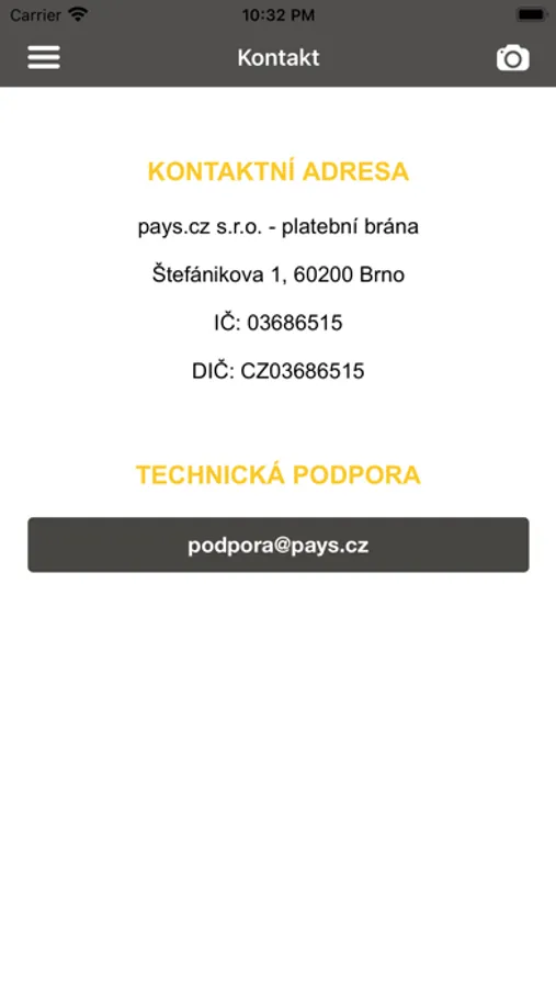 Aplikace dále umožňuje rychlé zadání požadavku na technickou podporu platební brány a případně i zaslání fotografie s konkrétním technickým problémem. Podpora Pays vyřizuje požadavky z aplikace prioritně.