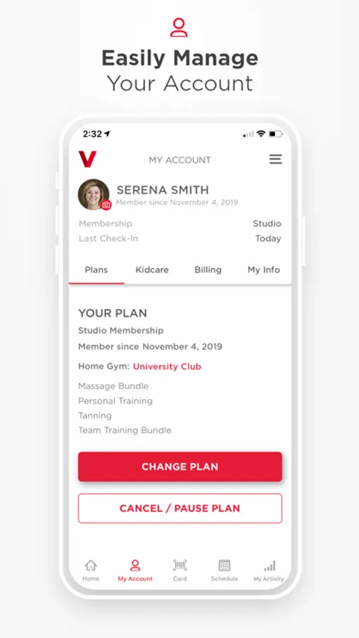 • Book classes and KidCare appointments.