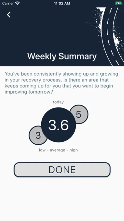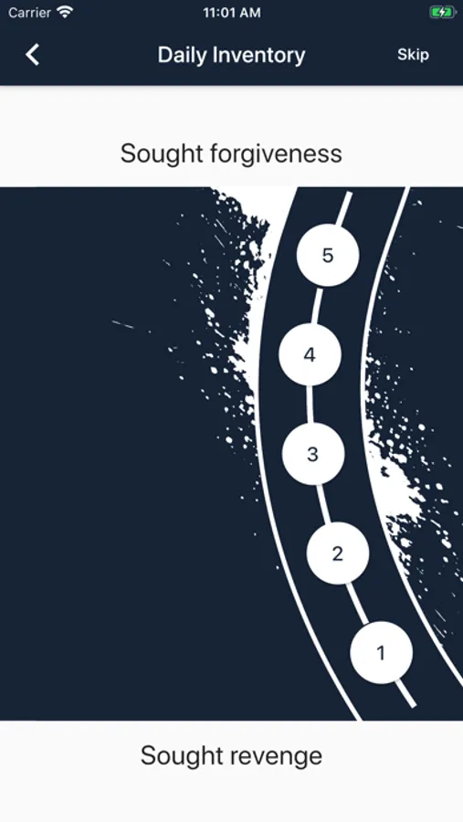 This app is designed to help you maintain an ongoing inventory, based on Step 10 of the 12 Steps. Each day, you'll be reminded to take a few moments to rate yourself on the pairs of traits/actions based on the previous 24 hours. Each week, you'll also be given the opportunity to reflect on the success of your past week and to plan for the week ahead. You can then share your results with a sponsor or friend for deeper accountability.