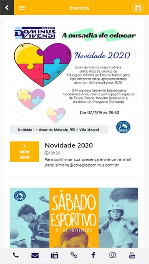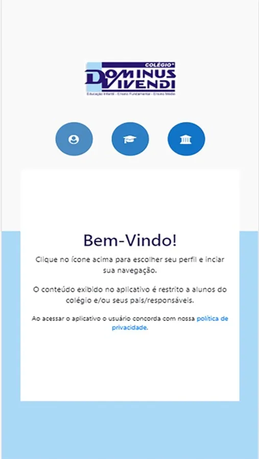 Aplicativo do Colégio Dominus Vivendi para que pais/responsáveis consultem informações relevantes como boletim, diário de classe e recados sobre ocorrências de aulas dos alunos.