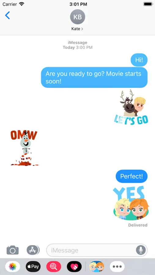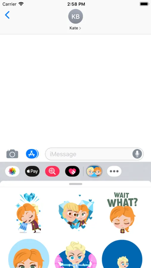 • Use stickers in chat—Tap to send, or touch and hold to put stickers on top of a bubble, other stickers, photos, and videos.