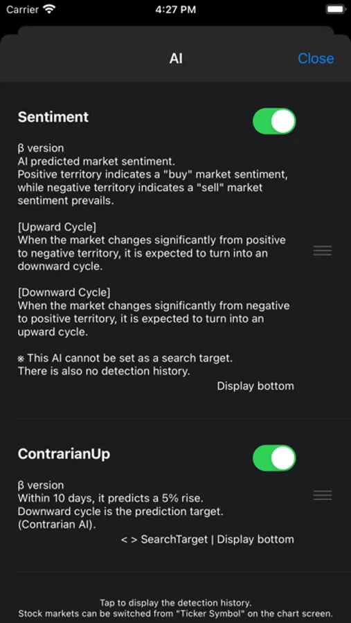 These include AI that predicts market sentiment, AI that predicts a rise, AI that predicts a fall, and AI that predicts a market rebound point.
