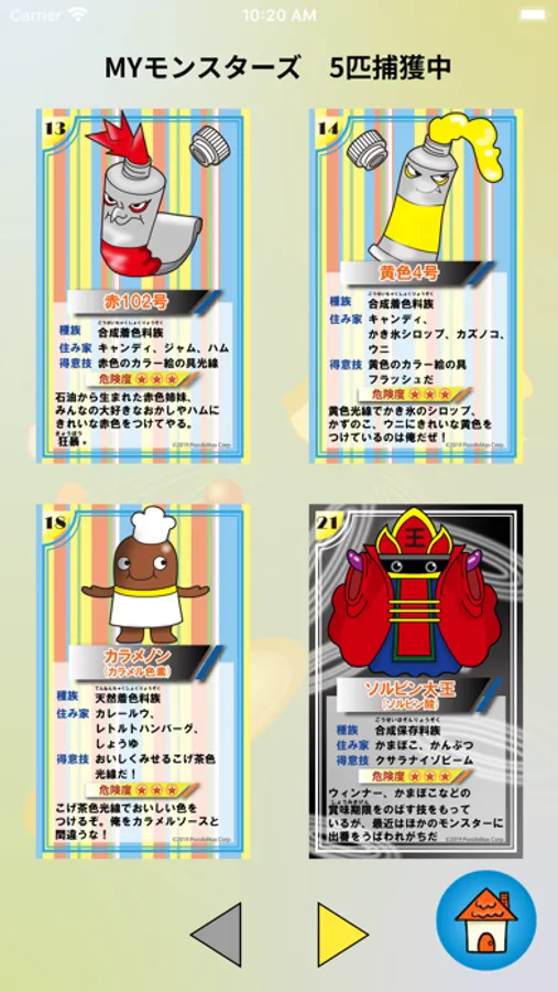 モンスターを捕獲して、モンスターを集めることで添加物の勉強ができます。