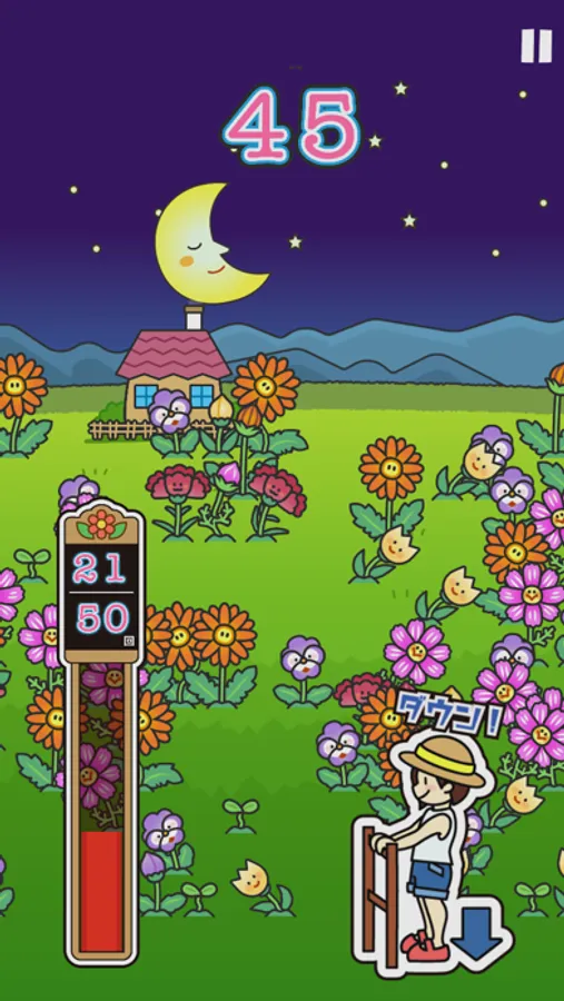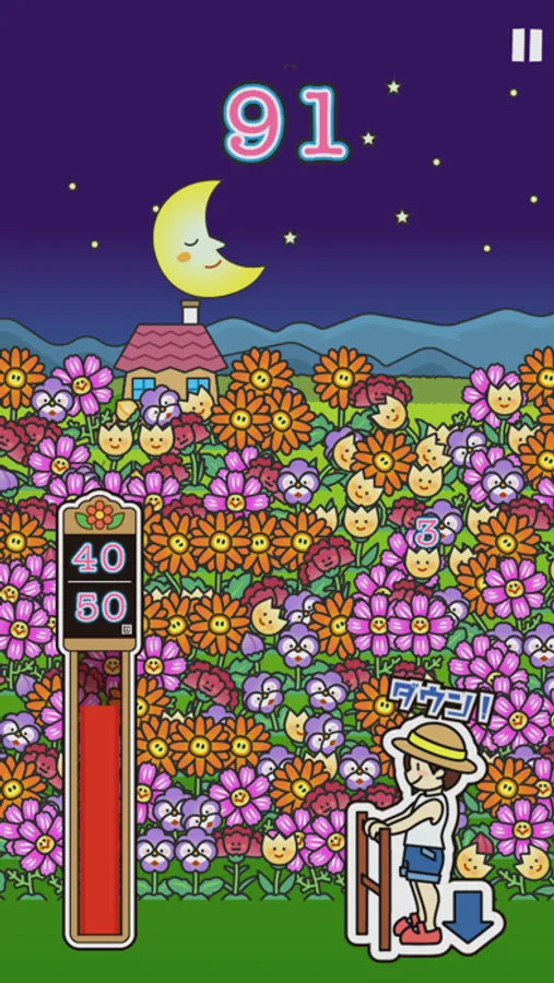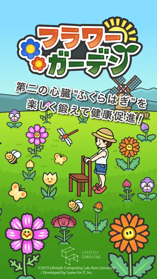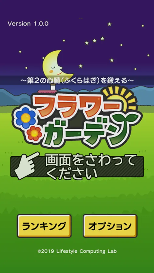 ゲームが始まると、踵(かかと)の上げ下げによって画面内の花が成長し、どんどん増えていきます。踵(かかと)の上げ下げは「1秒に1回」を目安に行ってください。目標回数まで行うと終了です。