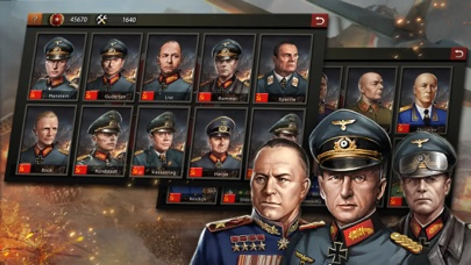Rommel, Goodrian, Manstein, Zhukov, Konev, Rokosovsky, Vatukin and other famous generals of World War II will show you their unique tactics and their trump card troops. Guderian's Groß deutschland division, Zhukov's Moscow Defense War, as well as the famous trump army Viking Division, “Das Reich” Division, 3rd SS-Panzer-Division Totenkopf.