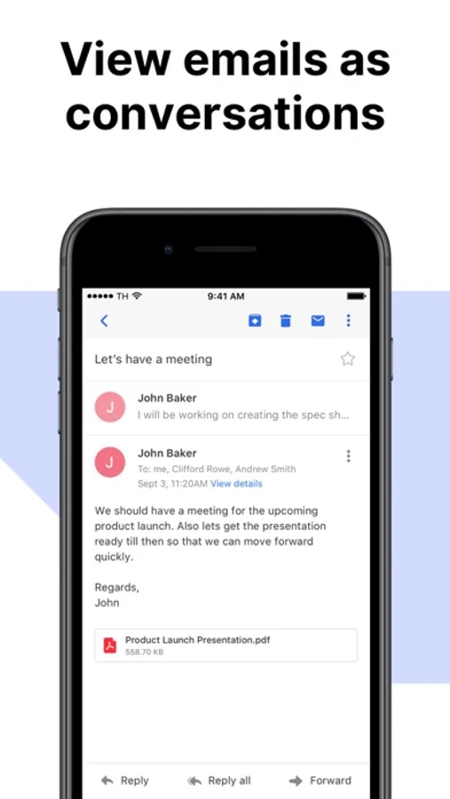 - Swipe through your inbox to quickly find emails, archive emails and mark emails that you need to revisit as unread.
