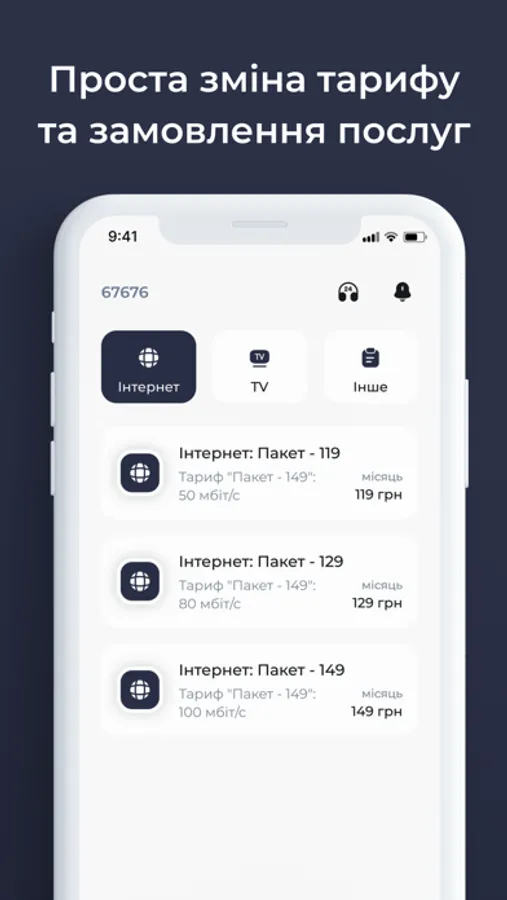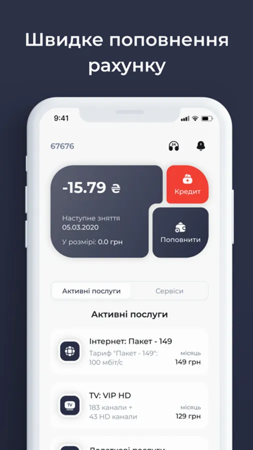 - можливість змінювати тарифний план та активувати підписки на додаткові послуги