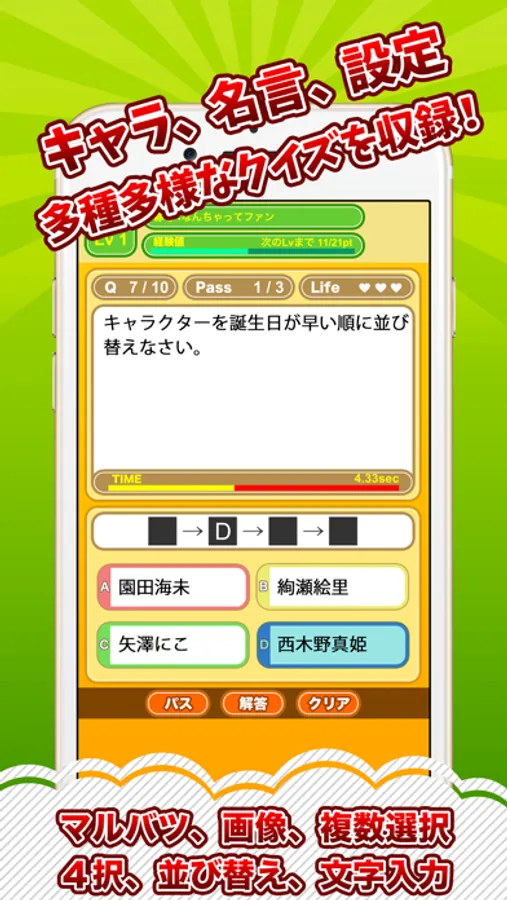 ●クイズの難易度は4段階!
