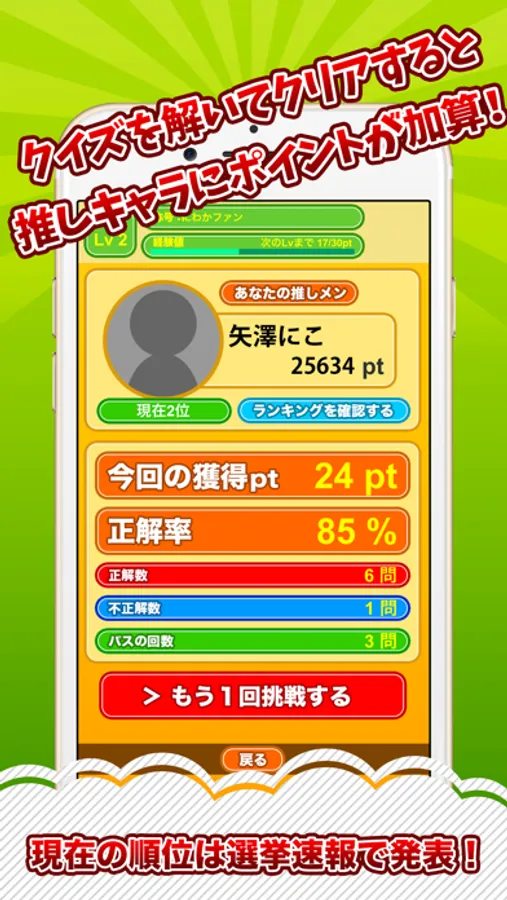 あなたは全国何位?クイズで獲得したポイントはユーザーランキングに反映されます。全国のファンとクイズ対決!