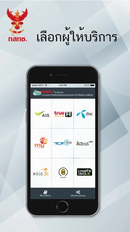 หมายเหตุ ผู้ใช้งานต้องอนุญาตให้แอปพลิเคชันเข้าถึงข้อมูลตำแหน่งที่ตั้ง (location) ของผู้ใช้ และอนุญาตให้ใช้สำหรับผู้ที่ลงทะเบียนเป็นตัวแทนจำหน่ายกับผู้ให้บริการโทรศัพท์เคลื่อนที่ในประเทศไทยเท่านั้น