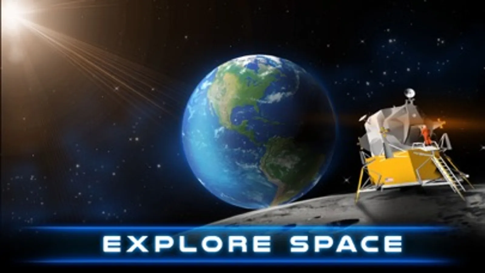Experience a walk in space near to a space station, a flight to the moon, a moon landing and a walk on the moon's surface.