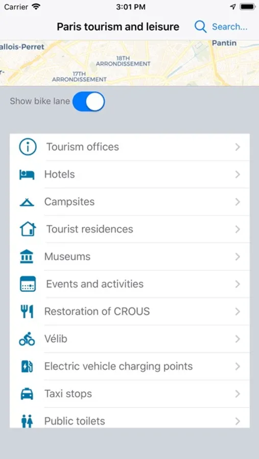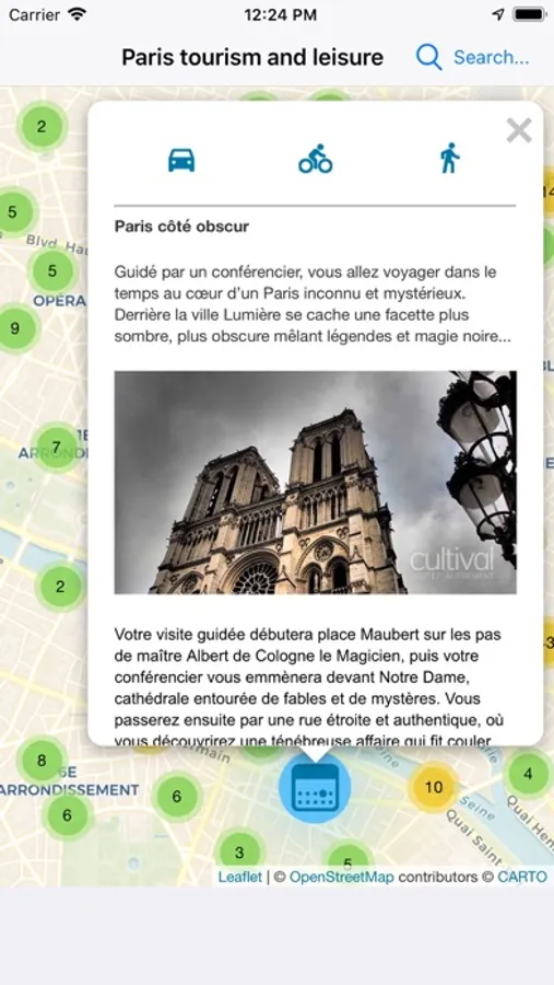 Whether you live in Paris or if you come for pleasure, tourism or work, this application allows you to instantly discover the location and information of all kinds of cultural and leisure events and activities, Hotels, museums, tourist residences, tourist offices, campsites, restaurants, bike lanes, public bike stations (Vélib), Taxi stops, Public toilets, Electric vehicle charging points... in Paris city.