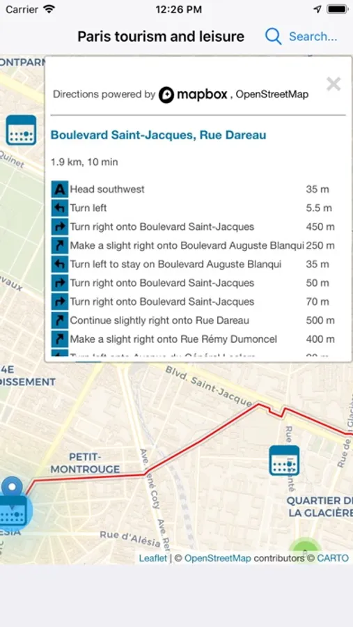 Once you select the point of your interest on the map, obtain with a single button the directions and the route to reach your destination.