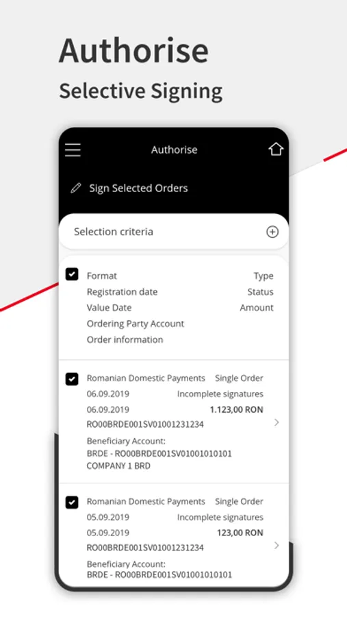 With BRD@ffice Mobile, you can view your company accounts data and to sign the payments initiated through the BRD@ffice site or through the MultiX app.