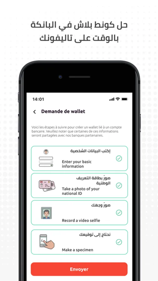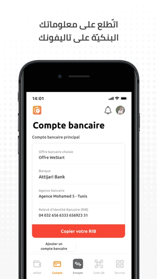 Open a free bank account in a few minutes. All you have to do is follow the instructions, upload the needed documents, and sign your contract. Your new account is directly linked to your Flouci wallet. You can use the account number to deposit your salary or receive payments directly to your account.